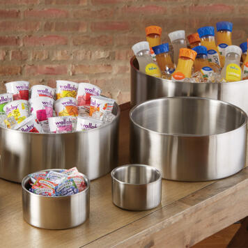 A chilled fruit salad is bright and refreshing. A room-temperature fruit salad is just sad. For those menu items that demand careful temperature control, these double-wall stainless steel bowls keep the cold in. In fact, they’re so well insulated that you’ll notice minimal condensation buildup as you move them from the refrigerator to the buffet line.