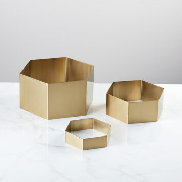With a sleek satin finish and minimalist design, these shimmering gold risers are always en vogue. Available in square, round, and hexagonal shapes.
