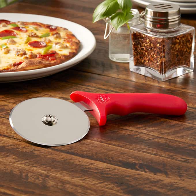 PIZR2PIZZA CUTTER, PLASTIC HANDLE W/ RED HNDL, 4″ DIA. |
