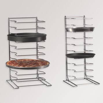 Rack-it and stack-it. Our pizza racks offer a safe and sanitary solution for temporary storage where pizzas are a hot commodity! Available in a variety of sizes, these heavy-duty, chrome-plated steel pizza racks are a perfect space saving idea for your kitchen. Use them as a drying rack for extra versatility!