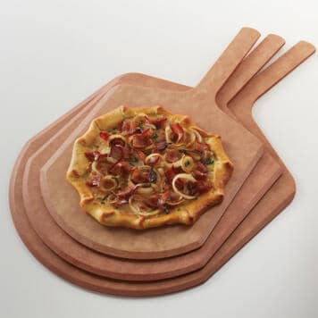 Upgrade your serveware with our rustic pressed wood pizza peels! Featuring a natural beige color and smooth exterior, these peels are a creative solution for serving a variety of foods in a way that makes you stand out from the rest. The blade’s tapered edges gently slide under food with ease and care. Plus, with the comfortable short handle, carrying food from the kitchen to your patrons is a total breeze. Designed with food safety as a top priority, these peels are made of NSF and USDA listed material. Available in a variety of sizes to accommodate both personal-sized and family-style portions.