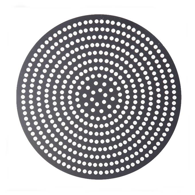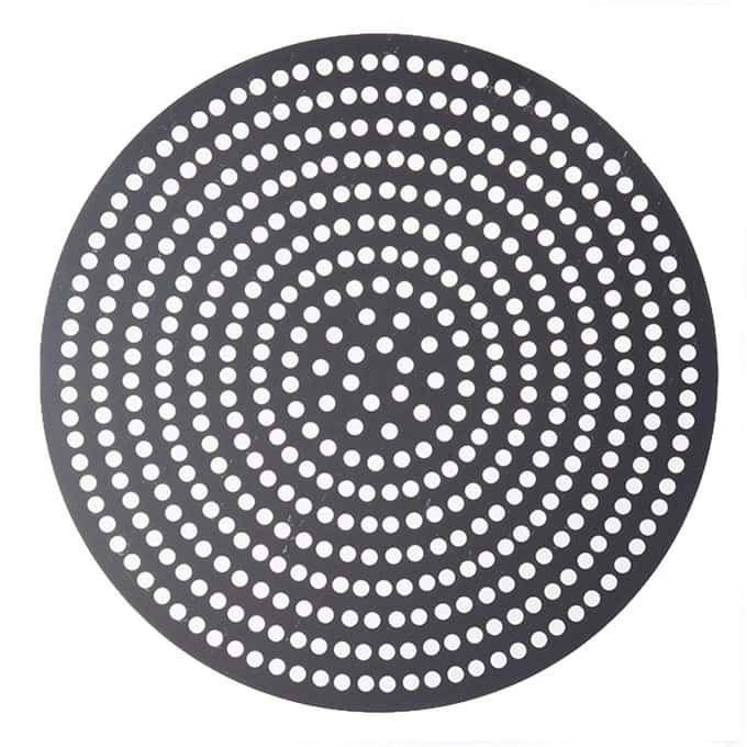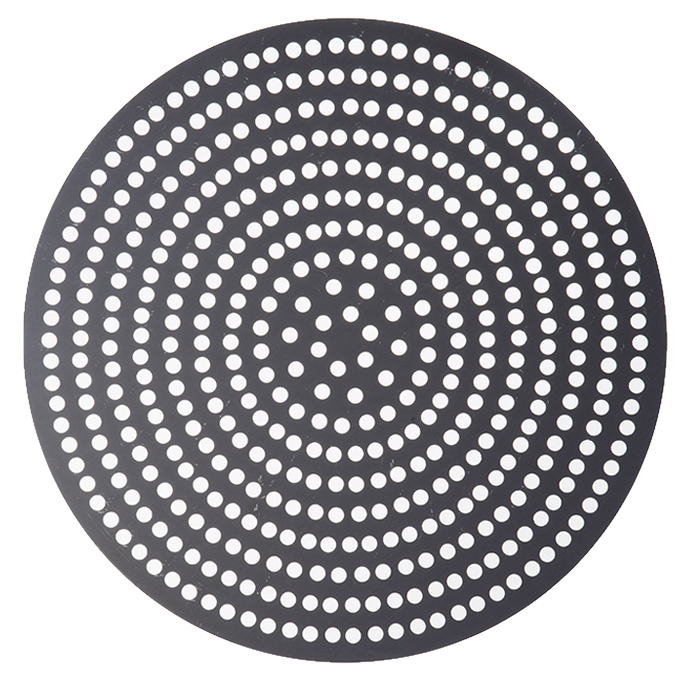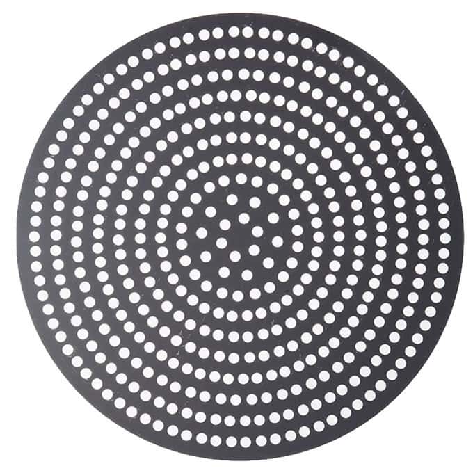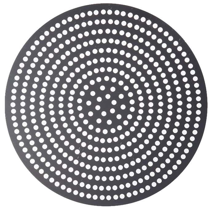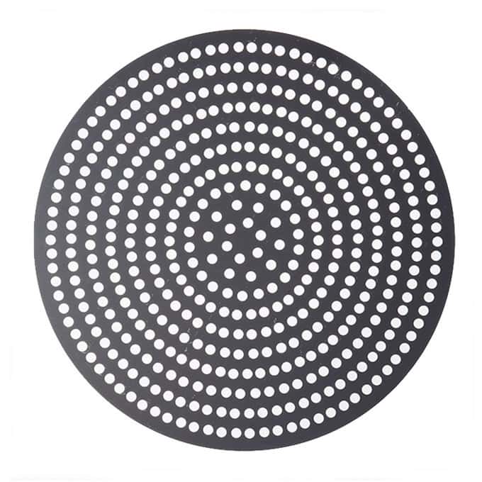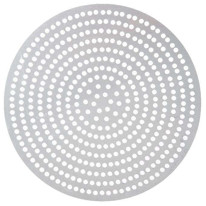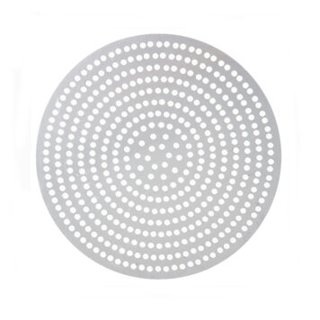 These super perforated disks will get you super perfect pizza crust every time! Featuring twice as many 3/8″ holes as our Perf disks, our SuperPerf disks allow for the ultimate amount of air circulation. Your customers will be able to enjoy flawlessly crisp, golden pizza crust all the way throughout! These versatile disks are also designed with unfinished edges, so you can use them as dough cutters for consistently-sized pizzas. Choose from a wide array of diameter sizes in either 18 gauge, 1 mm standard-weight aluminum or 18 gauge, 1.5 mm hard coat anodized aluminum.