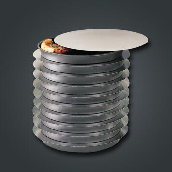 Reduce service times and keep your kitchen organized with these American Metalcraft round pizza pan separators! Not only do they function as covers for proofing or sanitarily preserving pre-made dough, they also serve as separators for vertically stacking your pans of dough between prepping and baking. These flat disks are constructed of 18 gauge, 1 mm standard-weight aluminum, making them ideal for industry use! To choose the correct separator, measure the top outside diameter of your pan and then find a separator that is a minimum of 2 inches larger. Note: Unfinished edges.