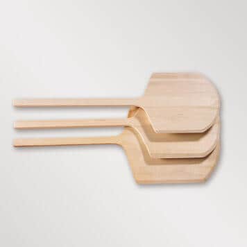 Our pizza peels are one-of-a-kind! With these 36″-long deluxe wood peels, you can bake, slice, and serve your pizzas all in one place. They are specially designed with long handles, allowing you to safely place food further back into the oven than if you were to use your hands alone. Plus, their blade features tapered edges that gently slide under dough without damaging its delicate structure during transfers. Once your pizza is baked to perfection, simply slice and serve it to your patrons right on the peel! The all-wood construction adds an authentic, rustic look to any tabletop or venue.