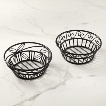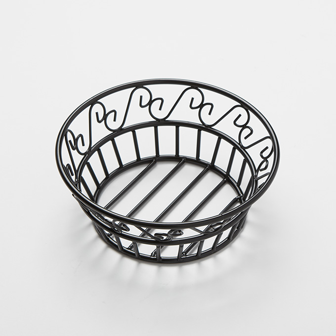 BASKET, WROUGHT IRON, ROUND, SCROLL, 8″ DIA.
