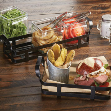 These steel condiment racks deliver a contemporary feel to your tabletops. Sleek and minimalistic, they’ll elevate the look of whatever you place inside.