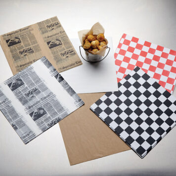 The fry paper is FDA approved and food safe. Choose from flat sheets or pre-formed folded squares. The new smaller FDA-approved sheets fit perfectly into smaller vessels like fry cups and mini fry baskets.