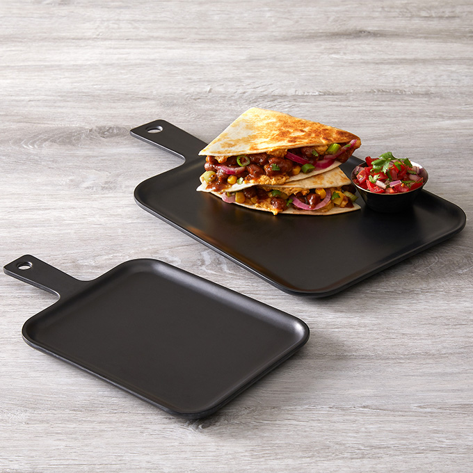 The rustic look of cast iron meets the lightweight of melamine in these serving dishes, now available in multiple shades. They’re easy to wash and even easier to carry. Not for oven or stove use.