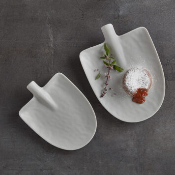 Creatively serve appetizers, meals and sides with our shovel-shaped melamine platters. Offered in different colors and sizes, these options provide a textured surface and are perfect for indoor and outdoor use.