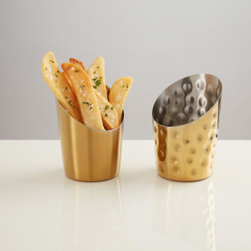 Designed with modern in mind, our gold fry cups are bound to catch the eye of guests. They’re the perfect way to subtly dress up any meal.