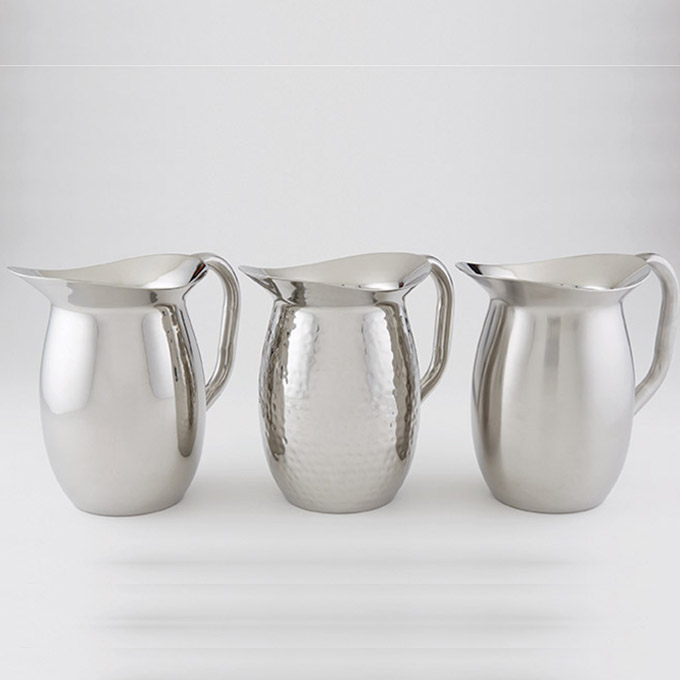 These double-wall pitchers reduce condensation and messy drips. Get them in a variety of different finishes and create a sleek and stylish showcase.