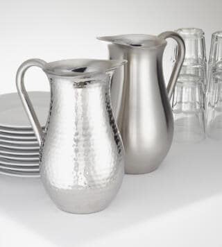 These double-wall pitchers reduce condensation and messy drips. Get them in a variety of different finishes and create a sleek and stylish showcase.