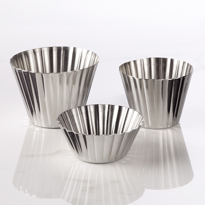 Add a touch of shine to every plate with these elegant fluted stainless steel sauce cups. Available in a variety of sizes.
