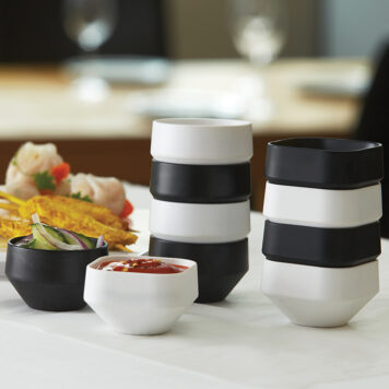 These matte finish melamine stackable sauce cups have the whole package. They’re durable, they’re dishwasher-safe, they’re attractive, and best of all, they’re stackable. What more could you want?