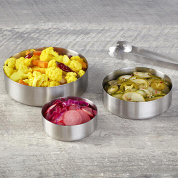 These straight-sided stainless steel mini bowls give you the opportunity to serve sides, small servings, and toppings in a modern way.