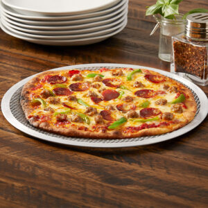 If you want to be known for your pizza, we’ve got the solution. Our round mesh pizza screens allow for maximum air ventilation, producing perfectly browned and baked crust throughout. Standard pans simply cannot match this effect! Plus, all our screens are constructed of durable 14 gauge, 1.5 mm heavy-weight aluminum to further ensure even heat distribution. With diameter sizes ranging from 6″ to 28″, we truly have a screen for any occasion!