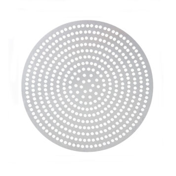 These super perforated disks will get you super perfect pizza crust every time! Featuring twice as many 3/8″ holes as our Perf disks, our SuperPerf disks allow for the ultimate amount of air circulation. Your customers will be able to enjoy flawlessly crisp, golden pizza crust all the way throughout! These versatile disks are also designed with unfinished edges, so you can use them as dough cutters for consistently-sized pizzas. Choose from a wide array of diameter sizes in either 18 gauge, 1 mm standard-weight aluminum or 18 gauge, 1.5 mm hard coat anodized aluminum.