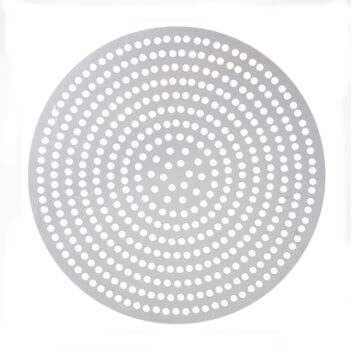 These super perforated disks will get you super perfect pizza crust every time! Featuring twice as many 3/8″ holes as our Perf disks, our SuperPerf disks allow for the ultimate amount of air circulation. Your customers will be able to enjoy flawlessly crisp, golden pizza crust all the way throughout! These versatile disks are also designed with unfinished edges, so you can use them as dough cutters for consistently-sized pizzas. Choose from a wide array of diameter sizes in either 18 gauge, 1 mm standard-weight aluminum or 18 gauge, 1.5 mm hard coat anodized aluminum.