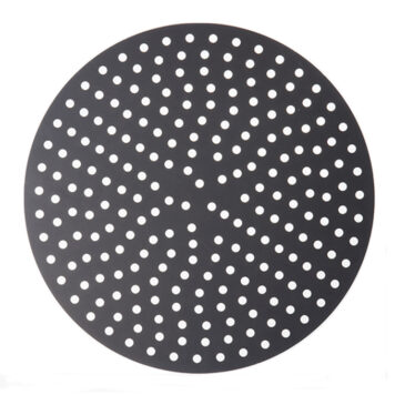 These perforated disks will bake 5-star pizzas that simply cannot be beat! Unlike solid pans, our Perf disks feature 3/8″ holes that allow for extra air circulation. Your customers will be able to enjoy flawlessly crisp, golden pizza crust all the way throughout! These versatile disks are also designed with unfinished edges, so you can use them as dough cutters for consistently-sized pizzas. Choose from a wide array of diameter sizes in either 18 gauge, 1 mm standard-weight aluminum or 18 gauge, 1.5 mm hard coat anodized aluminum.