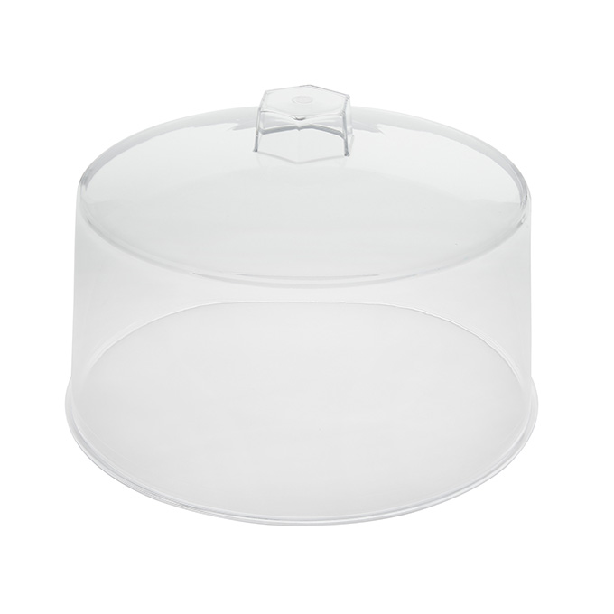 This 12″ diameter cover is crafted from break-resistant heavy clear plastic. It protects your food from airborne contaminants and keeps your creations fresh. Even better, the clear construction ensures all eyes are on the delicious goods you place inside. Pair it with its compatible cake stand (19001) for a completed look!