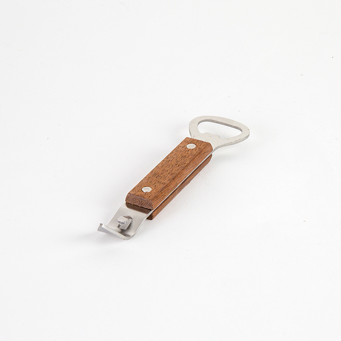 This 4-1/2″ L deluxe bar opener has a hardwood handle that gives it a rustic look. The durable stainless steel ends make it easy to open any bottle or can. It has a compact design that fits into pockets, aprons, and stores easily. Handwash only.