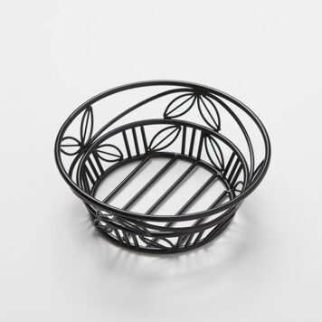This 8″ diameter black wrought iron basket has a whimsical leaf design that adds a bit of fun to anything you’re serving. It has ample space to serve your guests freshly baked breads or other shared appetizers. Up your presentation and functionality by pairing this with some of our paper liners.