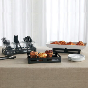 For the modern caterer, any opportunity for economization is valuable. We created the Black Twilight Multifunctional Riser to work as a “utility player” in your dining room. Each is a riser and a basket all in one. Whichever way you use them, these sturdy metal pieces would be a stylish, uber-versatile addition to your buffet service roster.