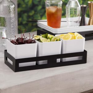 Used flat-side-up, this 14-5/8″ L x 5-1/8″ W x 2″ H riser can elevate a platter or hold a delicious plated meal. Flip it upside-down and you’ve got a handy basket for holding bread, fresh fruit, pastries or condiments. In other words, you can save money by buying one versatile piece of equipment instead of two context-dependent ones. Pretty clever, we know.