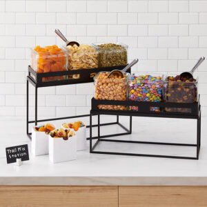 For the modern caterer, any opportunity for economization is valuable. We created the Black Twilight Multifunctional Riser to work as a “utility player” in your dining room. Each is a riser and a basket all in one. Whichever way you use them, these sturdy metal pieces would be a stylish, uber-versatile addition to your buffet service roster.