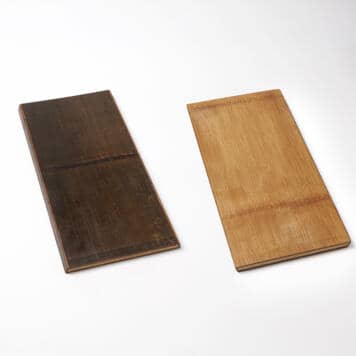 The dark side never looked better than on these unique wood boards. The wood is carbonized to giveoff rich colors and patterns on both sides.