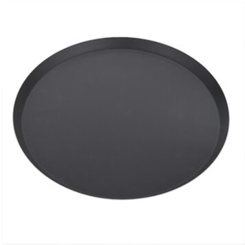 With a top outside diameter of 21″, bottom inside diameter of 20″, and depth of 11/16″, this round tapered/nesting CAR pan is unlike any other pizza pan. Constructed of 14 gauge, 1.5 mm thick, dark-colored hard coat anodized aluminum, this pan heats more quickly, evenly, and to a higher temperature compared to the standard aluminum pan. The non-reactive oxide coating safely cooks acidic ingredients, so you can maintain the integrity of the taste and color of your pizza sauces. The tapered sides help create a fluffy, perfectly even crust that will leave your patrons wanting more. Best of all, the edges are left unfinished so that they’re sharp enough to cut dough. Simply place a sheet of dough over the pan and use a rolling pin or pie roller to cut it down to size. This pan’s high-quality, durable aluminum is resistant to corrosion and wear, so it will remain intact for years on end. The nesting structure allows for easy stacking and space-saving storage. Use this pan at your pizzeria, restaurant, diner, or hotel kitchen. Made in the US. Hand wash only using aluminum-safe detergent.