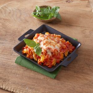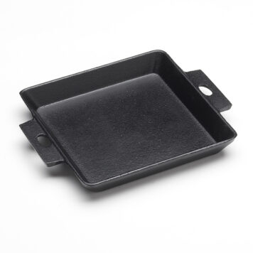 This 5-3/4″ square cast iron pan is a cool, contemporary way to cook and serve an appetizer or entree. The dynamic look of a square dish will get guests talking, and the cast iron finish adds essential functionality thanks to its heat retention and distribution. This pan has handles so you can easily carry it from the oven to the table. Pair with our wood trays and serving boards to finish your presentation!