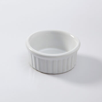 This 2-3/4″ diameter crisp white ceramic ramekin is an ideal option for small servings of sauce or dips. Its small size gives you plenty of room on the plate for elaborate entrees. And it’s made from ceramic which gives it an upscale feel. The classic white color and ribbed design will look fantastic with any of our dinnerware collections.