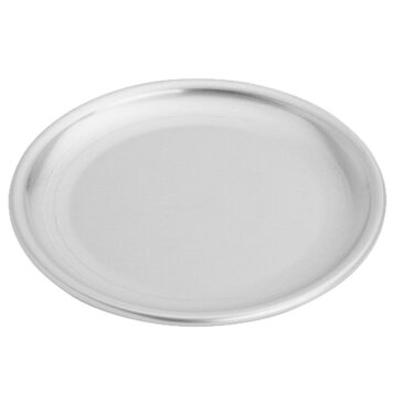 With an outside diameter of 19″ and inside diameter of 17″, this round coupe-style pan is a staple for baking and serving thin crust pizzas. Constructed of 18 gauge, 1 mm standard-weight aluminum, this pan transfers heat more quickly and evenly compared to heavy-weight aluminum pans. The smooth, flat bottom functions as both a baking pan and a serving platter, reducing the amount of dishes you need to wash. The slightly curved rim keeps your pizza in place, ensuring that it does not slide when transferring in and out of the oven or when transporting to your patrons. This pan’s high-quality, durable aluminum is rust, corrosion, and warping resistant, so it will remain intact for years on end. Best of all, it easily stacks for space-saving storage. Use this pan at your pizzeria, restaurant, diner, bakery, or hotel kitchen. Made in the US. Hand wash only using aluminum-safe detergent.