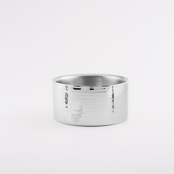Featuring double wall insulation, this 34 ounce capacity, durable hammered stainless steel bowl will sustain desired temperatures for long periods of time, and you won’t have to worry about it being too hot or sweating. Its 6″ diameter makes it perfect for shareable sauces, sides, or a few beverages on ice. Pair with our hammered buffetware for an elegant, cohesive look.
