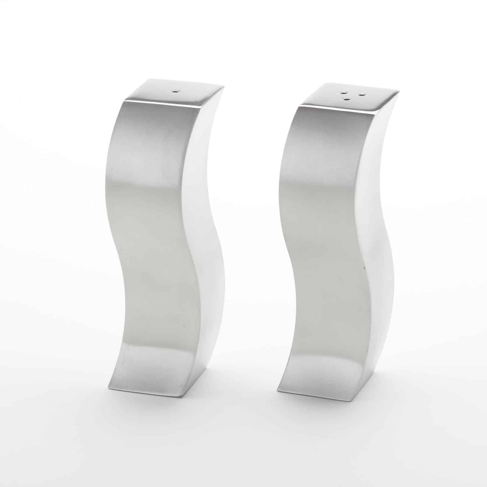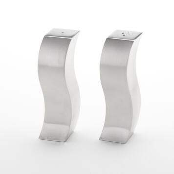 This 2 ounce stainless steel salt and pepper shaker set has a striking wavy design that will have your tables standing out easily. They hold the perfect amount of salt and pepper for the table and they won’t take up much table space. Pair them with one of our beautiful stainless steel sugar caddies to keep your tables stocked and stylish. Set your tables apart with these special shakers!