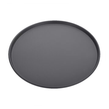 With a 14″ top diameter, 13-5/8″ bottom diameter, and 1/2″ depth, this round, tapered nesting pan is perfect for baking the ideal pizza. The enhanced EZ Release coating ensures effortless food release and quick cleanup—no sticking, no scrubbing. Constructed from 14-gauge, 1.6 mm, dark hard-coat anodized aluminum with a non-reactive oxide surface, it heats faster and more evenly than standard pans while preserving flavor and color. The tapered sides support thick, ingredient-heavy pizzas, while the durable aluminum construction resists corrosion for long-lasting performance. Designed for space-saving nested storage, this pan is proudly made in the USA. Hand wash only with an aluminum-safe detergent.