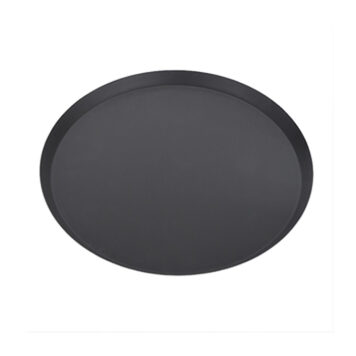 This round, tapered nesting CAR pan, with a 14″ top outside diameter, 13″ bottom inside diameter, and 11/16″ depth, stands apart from standard pizza pans. Constructed from 14-gauge, 1.6 mm, dark hard-coat anodized aluminum with a non-reactive oxide surface, it heats faster and more evenly than standard pans while preserving flavor and color. Now featuring the enhanced EZ Release coating, it lifts pizzas effortlessly and makes cleanup a breeze—even with sticky toppings. Tapered sides form a fluffy, even crust, while the unfinished edges trim dough precisely to size. The durable aluminum construction resists corrosion and wear for years of reliable performance. Designed for space-saving nested storage, this pan is proudly made in the USA. Hand wash only with an aluminum-safe detergent.