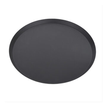 This round, tapered nesting CAR pan, with a 17″ top outside diameter, 16″ bottom inside diameter, and 11/16″ depth, stands apart from standard pizza pans. Constructed from 14-gauge, 1.6 mm, dark hard-coat anodized aluminum with a non-reactive oxide surface, it heats faster and more evenly than standard pans while preserving flavor and color. Now featuring the enhanced EZ Release coating, it lifts pizzas effortlessly and makes cleanup a breeze—even with sticky toppings. Tapered sides form a fluffy, even crust, while the unfinished edges trim dough precisely to size. The durable aluminum construction resists corrosion and wear for years of reliable performance. Designed for space-saving nested storage, this pan is proudly made in the USA. Hand wash only with an aluminum-safe detergent.