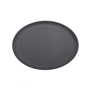 With an outside diameter of 11″, inside diameter of 9″, this round coupe-style pan is a staple for baking and serving thin crust pizzas. The new EZ Release coating ensures effortless food release and quick cleanup—no sticking, no scrubbing. Constructed from 14-gauge, 1.5 mm, dark hard-coat anodized aluminum with a non-reactive oxide surface, it heats quickly and evenly to deliver consistent results while preserving flavor and color. With a smooth, flat bottom that doubles as a baking pan and serving platter, it streamlines your workflow and minimizes kitchen clutter. The slightly curved rim keeps your pizza securely in place during oven transfers and table service, and the pans stack easily for compact storage. Proudly made in the USA. Hand wash only with an aluminum-safe detergent.