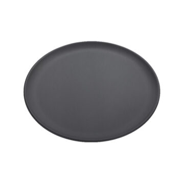 With an outside diameter of 12″, inside diameter of 10″, this round coupe-style pan is a staple for baking and serving thin crust pizzas. The new EZ Release coating ensures effortless food release and quick cleanup—no sticking, no scrubbing. Constructed from 14-gauge, 1.5 mm, dark hard-coat anodized aluminum with a non-reactive oxide surface, it heats quickly and evenly to deliver consistent results while preserving flavor and color. With a smooth, flat bottom that doubles as a baking pan and serving platter, it streamlines your workflow and minimizes kitchen clutter. The slightly curved rim keeps your pizza securely in place during oven transfers and table service, and the pans stack easily for compact storage. Proudly made in the USA. Hand wash only with an aluminum-safe detergent.