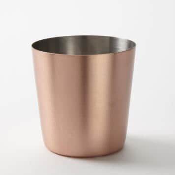 Simple styles add elegance to any tabletop, which is why this 14 ounce copper plated 3-3/8″ diameter fry cup is an excellent option. The simple design allows the copper to stand out – and ensure your food stands out, too. Serve your fries, sides, or desserts inside this sleek and trendy piece for a gorgeous look. Go the extra mile and combine this cup with one of our Copper Salt & Pepper Shaker Sets for a complete and cohesive presentation.