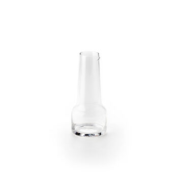 Elevate your service with this unique 34 ounce glass carafe. Its narrow neck not only looks interesting and elegant, it also makes pouring and passing easy and comfortable. The size is ideal for leaving at the table for guests to serve themselves. This crystal clear carafe is a fantastic way to serve water with fruit, mimosas, and other colorful options. Pair this piece with our olive wood platters for an elegant tabletop display.
