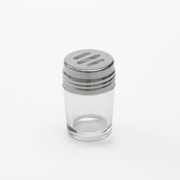 With a capacity of 2 ounces, this glass spice shaker with slotted stainless steel lid is the perfect dispenser for flaky spices and grated cheese. Its sleek exterior and cylindrical shape offer a contemporary touch to any tabletop. The crystal clear body allows your guests to easily identify the shaker’s contents and for staff to see the amount remaining. When it is time for a refill, simply unscrew the practical metal top. Measuring at a height of 3-1/8 inches and a diameter of 2 inches, it is the ideal compact size for storage or fitting into a carrying caddy. Use this shaker at your pizzeria, restaurant, diner, hotel, or catered event. Designed with convenience in mind, this jar is dishwasher safe for easy handling.