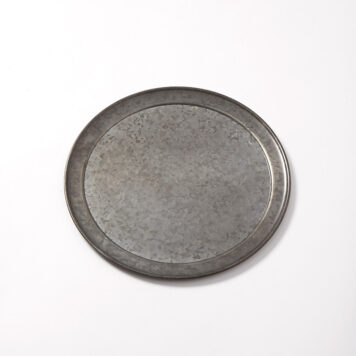 The days of using a standard aluminum pan for serving are over. You now have options! With a diameter of 12″ and height of 3/8″, this onyx galvanized wide rim pan is perfect for pizzas, burritos, fries, sandwiches, burgers, and everything in between. The wide rim keeps pizzas and food from sliding off the tray when serving, so your customers can enjoy a mess-free experience. Constructed of durable, 6 mm thick galvanized iron that is resistant to rust, this pan is built to last in a commercial setting. Elevate your pizzeria, restaurant, bakery, or hotel with this functional and stylish pan.