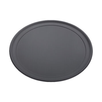 With an outside diameter of 14″ and inside diameter of 12″, this round wide-rim pan is a staple for baking and serving thin crust pizzas. Constructed of 14 gauge, 1.5 mm thick, dark-colored hard coat anodized aluminum, this pan heats more quickly, evenly, and to a higher temperature compared to the standard aluminum pan. The non-reactive oxide coating safely cooks acidic ingredients, so you can maintain the integrity of the taste and color of your pizza sauces. The smooth, flat bottom functions as both a baking pan and a serving platter, reducing the amount of dishes you need to wash. The wide rim keeps your pizza in place, ensuring that it does not slide when transferring in and out of the oven or when transporting to your patrons. This pan’s high-quality, durable aluminum is resistant to corrosion and wear, so it will remain intact for years on end. Best of all, it easily stacks for space-saving storage. Use this pan at your pizzeria, restaurant, diner, bakery, or hotel kitchen. Made in the US. Hand wash only using aluminum-safe detergent.