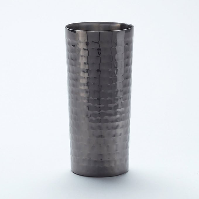 Make a splash at the bar with these hammered, mirrored-finish stainless steel designs in three different colors.