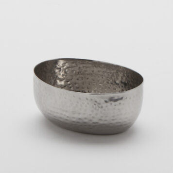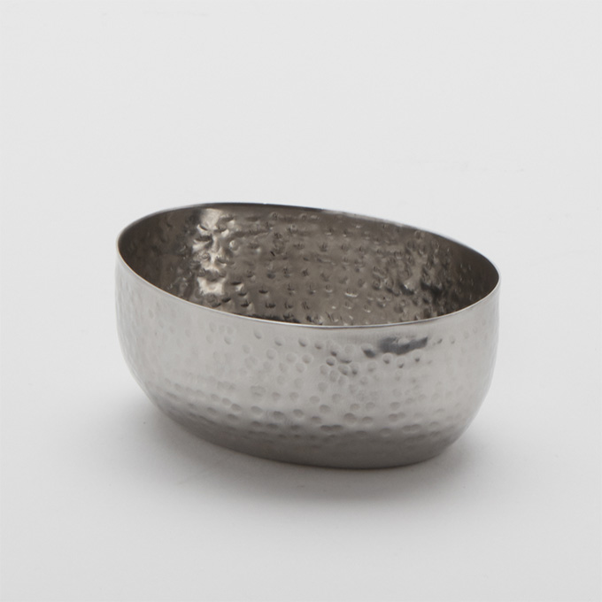 SAUCE CUP, STAINLESS STEEL, OVAL, HAMMERED, 4 OZ.