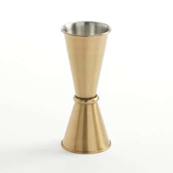 This sleek gold brushed stainless steel Japanese-Style Jigger has a 1 ounce and 1-1/2 ounce capacity that’s a useful addition to your bar in more ways than one. It makes concocting delicious cocktails easy thanks to its precise capacities, which are laser-etched into the product so they don’t rub off or fade with use. The gold brushed stainless steel finish is sleek, upscale and gorgeous – who doesn’t love the elegant look of gold? And it features a tall shape and deep wells which help guard against spills. Get it with our gold brushed stainless steel jigger in the other size to keep your bar stocked.