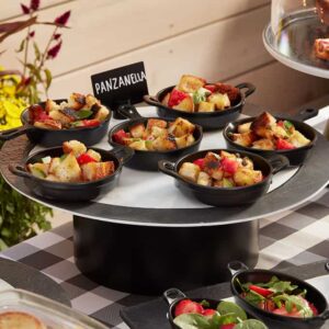 Serve bar snacks, small entrées, or sides in this classic 4-3/4″ L x 3″ W x 1-1/4″ H black oval melamine faux cast iron casserole dish! The look of cast iron provides a classic feel, and the melamine construction allows for easy cleaning and durability. Pair this piece with serving boards from our Melamine Naturals collection for a complete, timeless look!